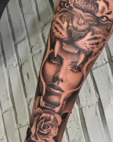 As tatuagens ultra realistas realizadas por Elienai Felix são desenvolvidas com foco absoluto em fidelidade, profundidade e impacto visual. Cada projeto é construído a partir de estudos detalhados de luz, sombra, textura e contraste, garantindo resultados que reproduzem com precisão traços, volumes e expressões.