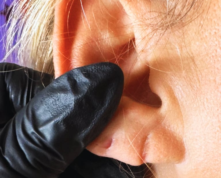 Lobuloplastia com técnica segura e precisa, indicada para correção ou reconstrução do lóbulo da orelha rasgado ou alargado. O procedimento é feito com cuidado, higiene rigorosa e foco na recuperação estética da região, proporcionando um resultado natural, harmonioso e duradouro.